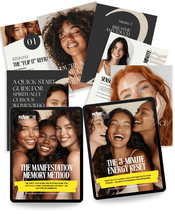 I’m Tara — creator of the Picture It Manifested, where manifestation meets real life (no glitter, no guru vibes). I built this because I was tired of vision boards that felt like wish lists and affirmations that felt like homework. My tools are designed to work in your actual life — even on the messy, low-vibe days — so you can stop chasing your dream life and start living like it’s already yours.